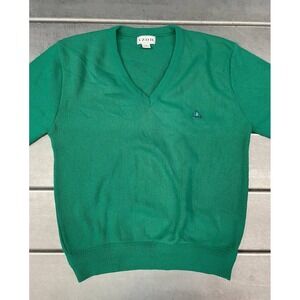 Vintage Izod Pullover Sweater Mens Medium Green Vneck Jumper Golf Performance