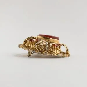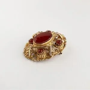 Vintage Sphinx Brooch Pin Red Poured Glass & Cabochon Rococo Baroque Style A530
