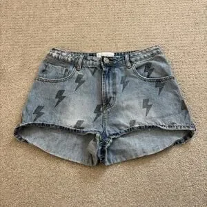One Teaspoon High Waist Bonita Lightning Bolt High Rise Mom Denim Short Sz 29