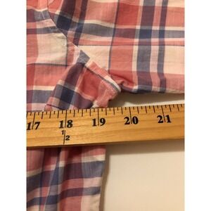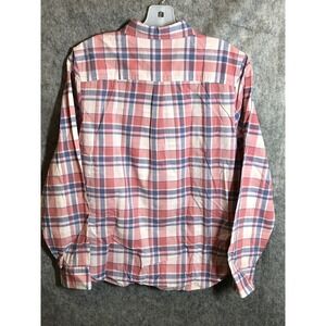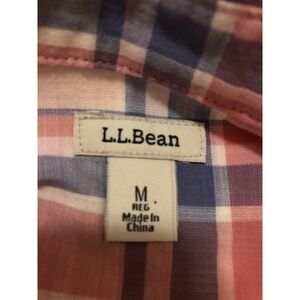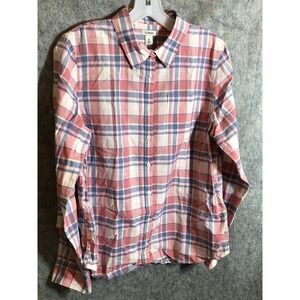 LL Bean Shirt Women Size M Pink Madras Plaid Button Up Long Sleeve Blouse Career