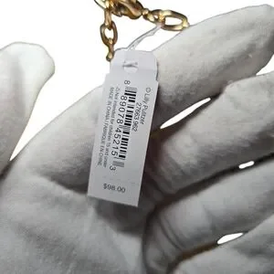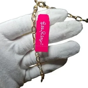 This exquisite Lilly Pulitzer necklace features a striking collar-style design with multiple tassel set against elegant gold accents. The piece is adorned with dangling elements that catch the light beautifully, making it a standout accessory for any occasion.
