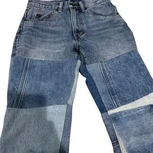 Levi’s 517 Patchwork Cropped Bootcut Jeans in a beautiful mixed denim wash. These feature a unique patchwork design using multiple shades of blue denim, giving each pair subtle variations that add to the character of the piece.