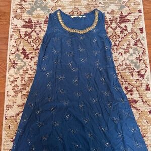 Avaasa India Women’s Blue Gold Bead Embellished Maxi Tank Dress Rayon Sz Medium
