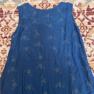Style: Women’s Blue Gold Bead Embellished Tank Dress