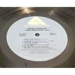 The Barry Manilow "This One's For You" vinyl record album LP from 1976 by Arista Records is a classic piece of music history. This 12" LP features soft rock, traditional/vocal styles from the 1970s, with hits like the title track "This One's for You" and many others. The black vinyl record comes in a cardboard sleeve with the original inner sleeve and cover, making it a must-have for any fan of pop, rock, and easy listening music.