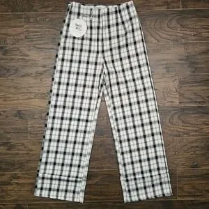 The black and white plaid pattern adds a preppy touch to your outfit, while the straight leg style offers a chic and timeless look. These pants are machine washable and easy to care for, ensuring that they will remain a staple in your wardrobe for years to come. Don't miss out on the opportunity to add these versatile and fashionable pants to your collection.