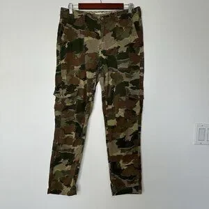 Anthropologie Camo Cargo Pants Size 29 Cotton Linen Blend Green Brown