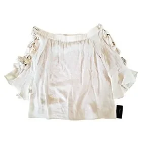 Thalia Soda 3/4 Sleeve Top Blouse Size L Iff Shoulder Lattice Sleeve Lined NWT