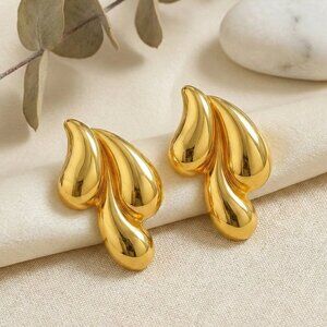 18K gold plated earrings, stainless steel earrings, drop earrings, teardrop design earrings, unique earrings, gold teardrop earrings, women's fashion jewelry, gold drop earrings, hypoallergenic earrings, statement earrings, modern earrings, elegant earrings, luxury earrings, gold jewelry for women, gift for her, stylish earrings, high-quality earrings, durable earrings, nickel-free earrings, gold plated jewelry, trending earrings, chic earrings, contemporary earrings, affordable luxury, fashion accessories, fall fashion, gift