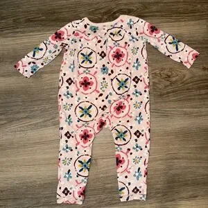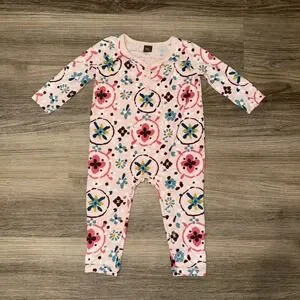 Tea Collection Baby Girl Floral Romper 12 18M Pink Snap Long Sleeve