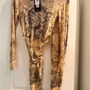 Fashion Nova Black and Cream Patterned Set