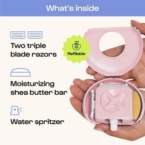 The world's first all-in-one portable razor. This TSA-approved, award-winning original packs everything you need to shave any time, anywhere: a refillable spray bottle, moisturizing bar, and two triple-blade, flex hinge razors for a clean, close shave. Glide on the Shea Butter-infused moisturizing bar pre- and post-shave for silky, soft-to-the-touch skin.