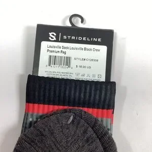 Strideline Louisville Cardinals Crew Socks Premium Regular Black Red Logo New
