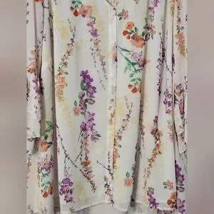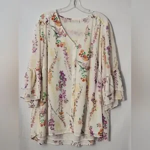Belle By Kim Gravel Floral Ruffle Sleeve Top Size 2X