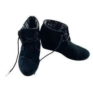 TOMS Womens Black Suede Lace-Up Ankle Booties Wedge Size 9