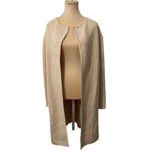 Womens Beige Knit Open Front Long Sleeve Cardigan Sweater Casual Minimalist M