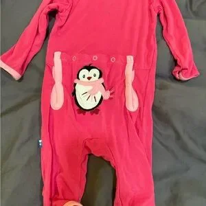 Kickee Pants Vibrant Pink Kids One Piece With Penguin