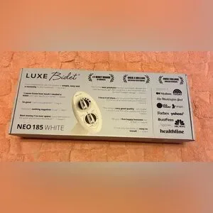 Luxe Bidet Neo 185 bidet attachment in white. Easy-install, dual-control design. Clean, modern look for bathrooms.