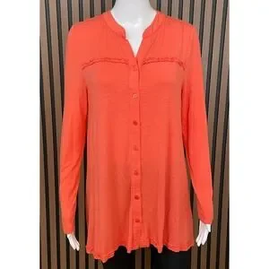 Soft Surroundings Graciela Women's Top Shirt Tunic Button Up Split Neck M Orange