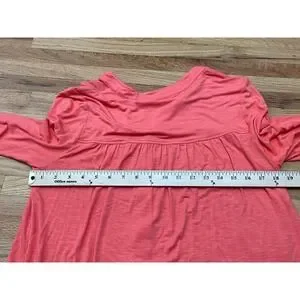 The Soft Surroundings Graciela Women's Top Shirt Tunic in size M features a stylish split neck with a button closure, making it suitable for occasions like travel, parties, or casual wear. Made from a blend of spandex and viscose, this tunic offers a comfortable and breathable fit for all seasons. The vibrant orange color adds a pop of color to your wardrobe, while the ruffle accents and long casual sleeves add a touch of elegance. With its easy-care properties and hand wash only garment care, this tunic from Soft Surroundings is a versatile and fashionable choice for any woman's collection.