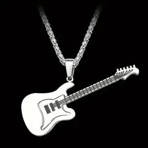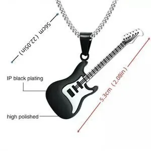 Silver Tone Electric Guitar Necklace and Pendant #620