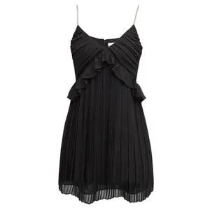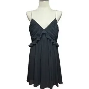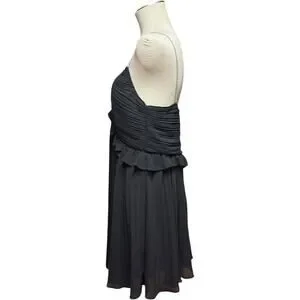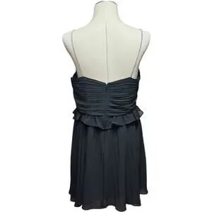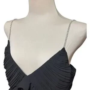 Michael Michael Kors Pleated Rhinestone Chain Strap Ruffle Trim Mini Cocktail Dress Black 12