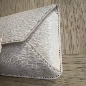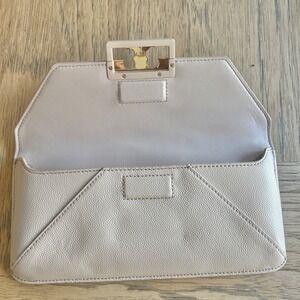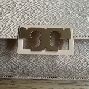 $398 NWOT TORY BURCH Gigi Envelope Clutch Handbag Beige Pebbled Patent Leather