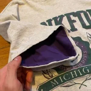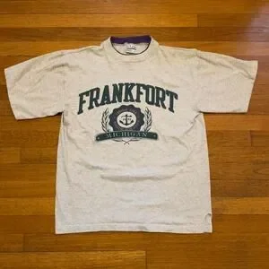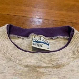* Vintage 90s Gear for Sports Frankfort Michigan big center crest graphic collegiate style rainbow flecked heather grey purple and green double face collar and sleeve vented tee shirt