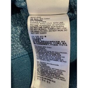 The Marmot Men's Hoodie is a large, green pullover designed for comfort and style. Made from a blend of cotton and polyester fleece, it features a graphic logo and a drawstring closure. The long sleeves and crew neck make it suitable for fall weather. Ideal for casual outings or relaxed weekends, this hoodie is machine washable for easy care. Manufactured in China, it is in used condition.