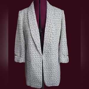 Beautiful tweed blazer by Anne Klein. Perfect for dressing up your workwear, formal events or even just out to dinner! Timeless design with a modern touch.