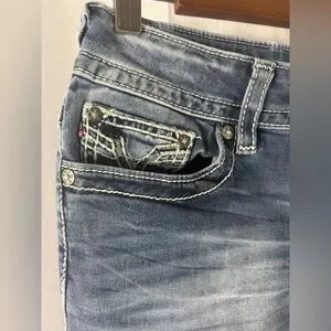 Vigoss Chelsea Skinny Jeans in women’s size 9/10. These jeans feature a trendy Y2K-inspired low rise fit with a flattering skinny leg silhouette. Classic 5-pocket styling with zip fly and button closure. Soft denim with comfortable stretch for an easy, body-hugging fit.