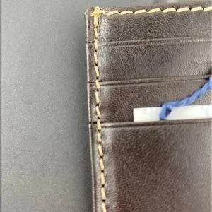 New, with tags. Never used. Holds 3 credit cards, an ID and a spot for a small amount of cash inside.