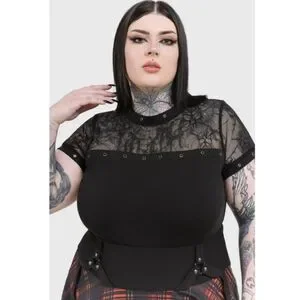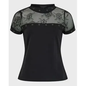 Killstar Black Lace Yoke Eyelet Short Sleeve Top