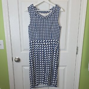 Boden Martha Pencil Sheath Dress Retro Print Cobalt Blue, Black & White Geometric Pattern, Women's Size 8R
