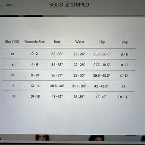 See Solid & Striped size guide - as pictured.