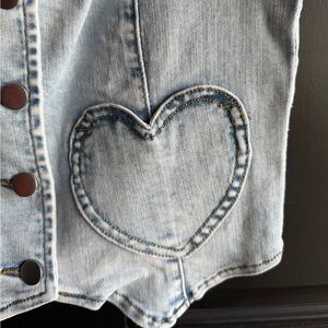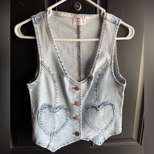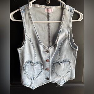 NWOT Pink Lily light wash Stretch Denim heart Vest size small