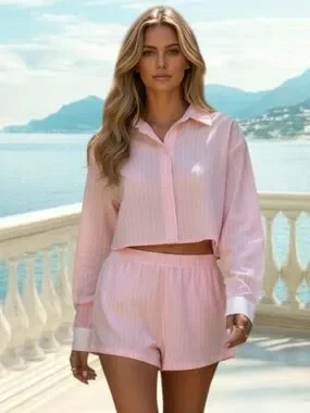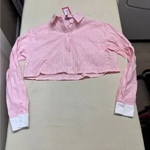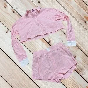 NWT Edikted XS pinstriped cropped button down & shorts set