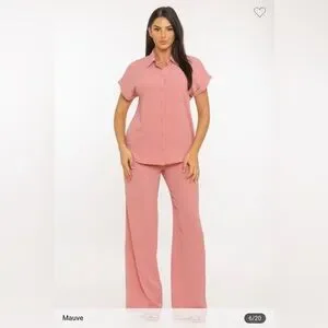 Elevate your style with this chic mauve pants and shirt set. Perfect for any occasion, this ensemble offers both comfort and elegance.