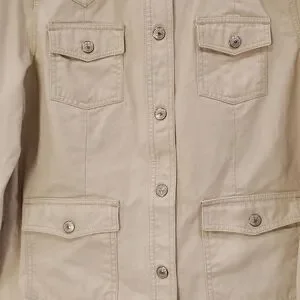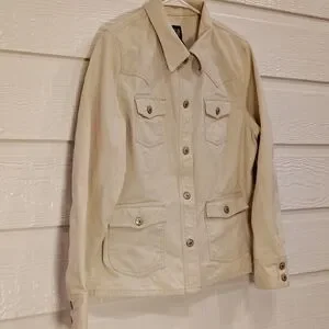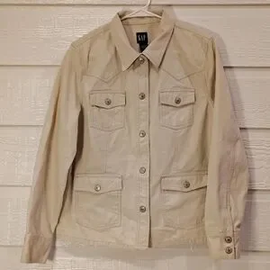 GAP Womens LG 100% Cotton Cream Colored Denim Utility Jacket Classic Rodeo