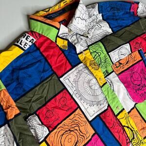 Tommy Hilfiger Map Print Button Up Shirt Men’s M Mauritius Colorful Topographic