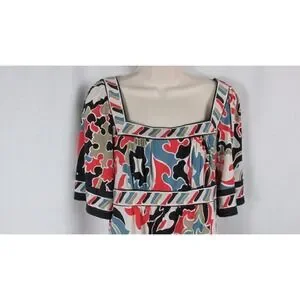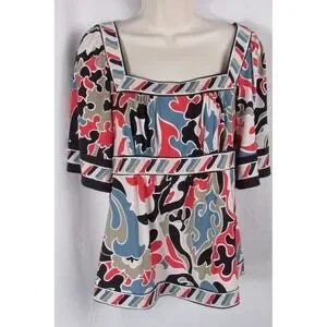 BCBG maxazria S black orange blue print top blouse women's Small