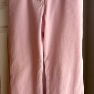 High end designer stylish stretch cotton denim trouser style jeans that could be styled as sporty or as upscale jeans. Light pink with high waist. Hard to find and collectible item as founder Marie Gray is no longer part of the eponymous St. John brand. Condition is very good, like new. Approximate retail value is $385.