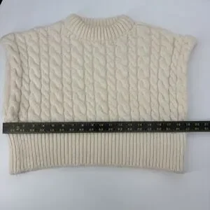 Zara Womens Size Small Ivory Cable Knit Pullover Cropped Sweater Vest