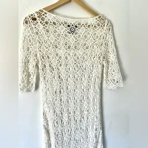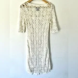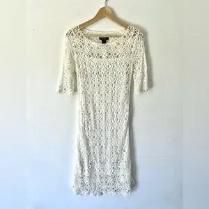 Lauren Ralph Lauren Ivory Crochet Cotton Half Sleeve Dress Size 6 NWT