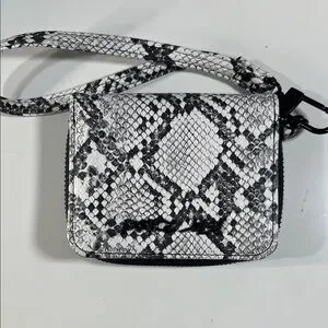 Textured Snake-Print Crossbody Wallet in Black & White