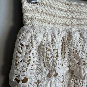 Swoon Women's Crochet Lace Tiered Mini Skirt Cream Boho Festival NEW Y2K Chic
