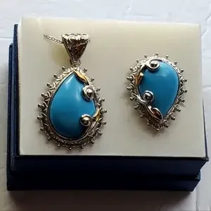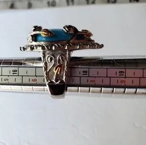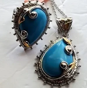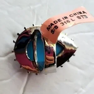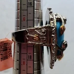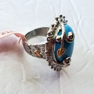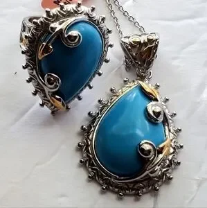 New Women's Stamped 316L S. Steel Necklace. Ring is Size 7 but not Stamped. Silver, Faux Gold Details, and Blue Stones. Jewelry. Ladies. Fashion Jewelry. Comes in box. NWT