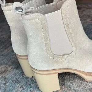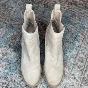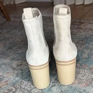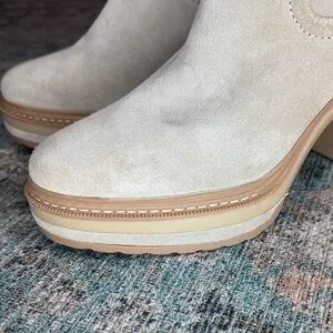 Chic cream boots with a sturdy heel. Stylish and versatile for any outfit. Only worn a few times. I do not have the box for these. See pics for details of boots and let me know if you have any questions! From pet friendly smoke free home.