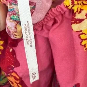 Pink dress / Tunic with printed flowers tropical theme tie back, can be worn on or off shoulders, has pockets!