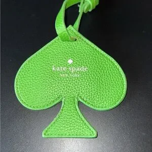 kate spade spade-shaped luggage tag for kids. Textured durable material with matching strap. Simple logo detail on front. Easy to attach to bags and backpacks.